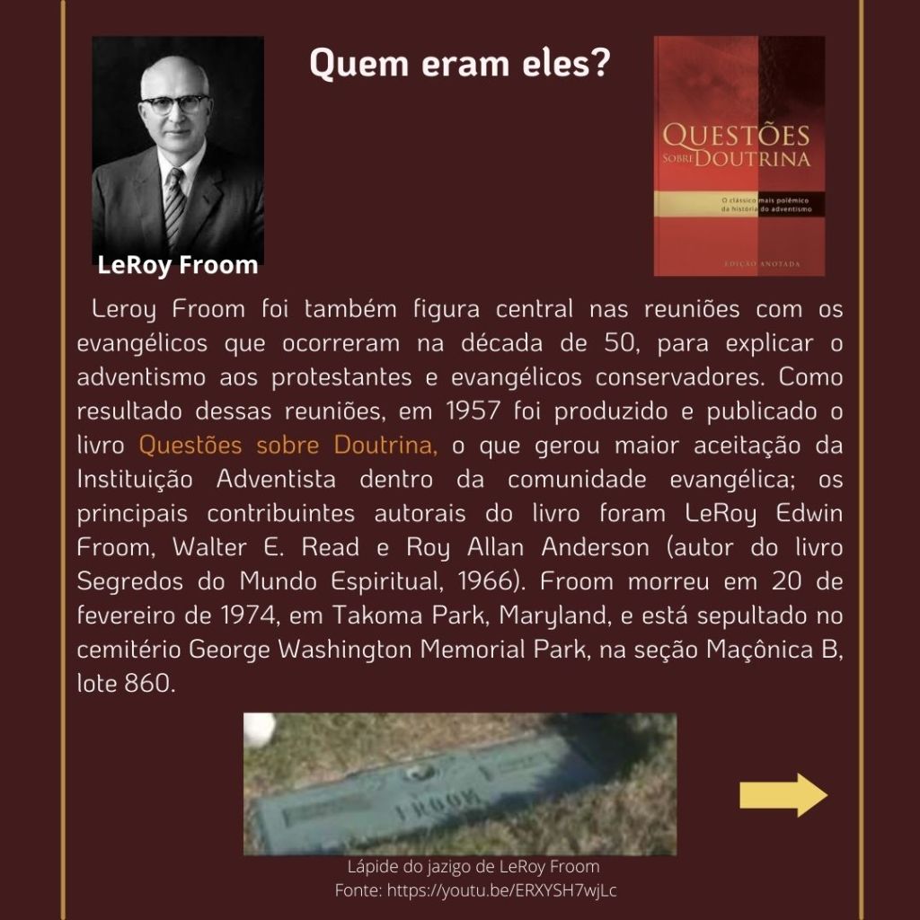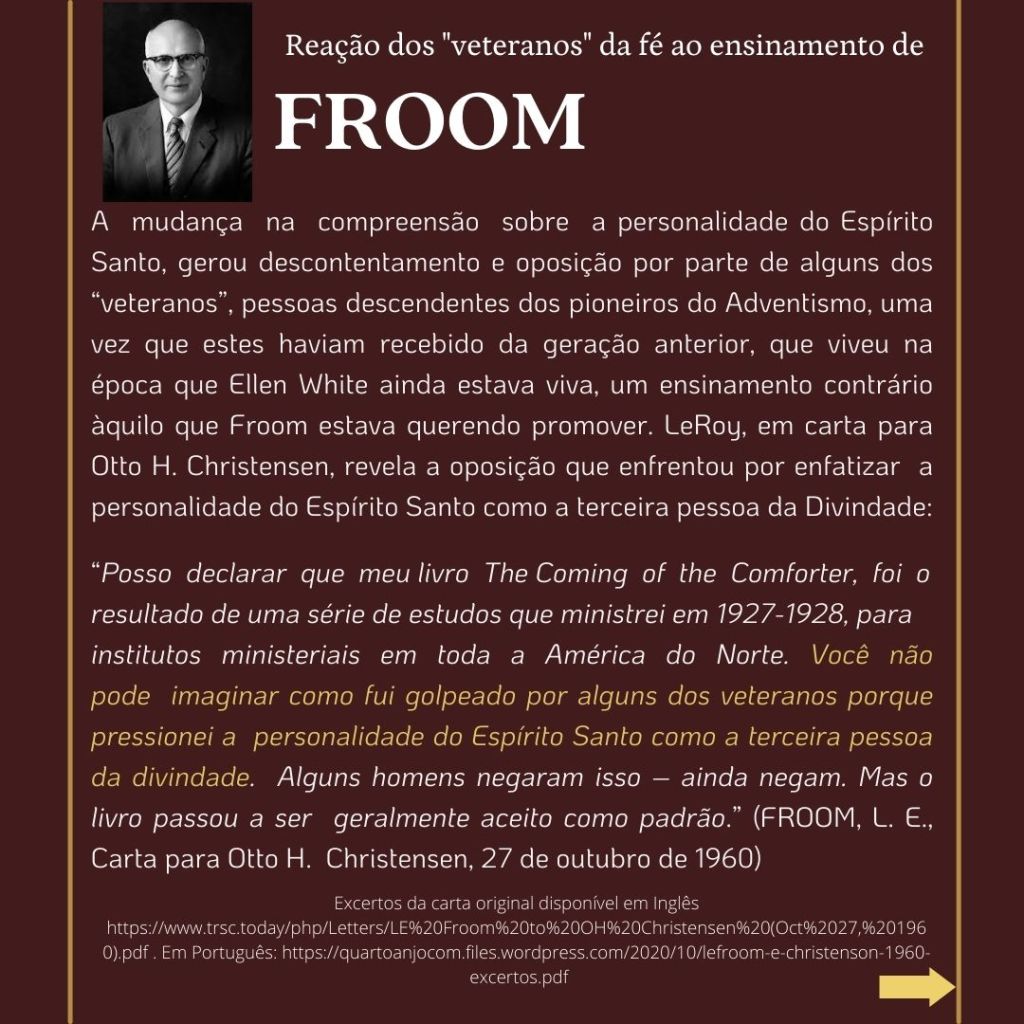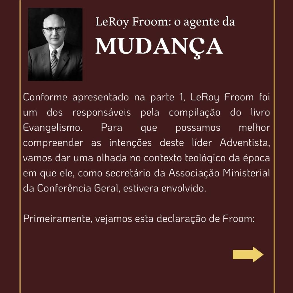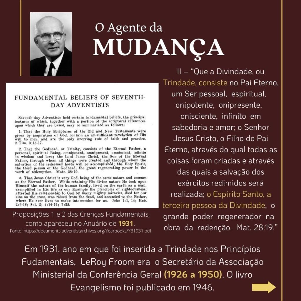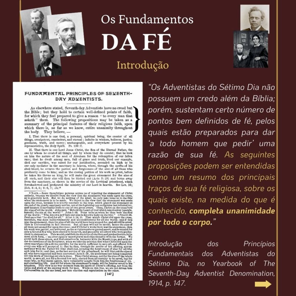 “O inimigo das almas tem procurado introduzir a suposição de que uma grande reforma devia efetuar-se entre os adventistas do sétimo dia, e que essa reforma consistiria em renunciar às doutrinas que se erguem como pilares de nossa fé…. Se tal reforma se efetuasse, qual seria o resultado? Seriam rejeitados os princípios da verdade… nossa religião seria alterada. Os princípios fundamentais que têm sustido a obra nestes últimos cinquenta anos [1850 a 1904], seriam tidos na conta de erros. Estabelecer-se-ia uma nova organização. Escrever-se-iam livros de ordem diferente. Introduzir-se-ia um sistema de filosofia intelectual.” (WHITE, E. G., Mensagens Escolhidas, v. 1, p. 205)