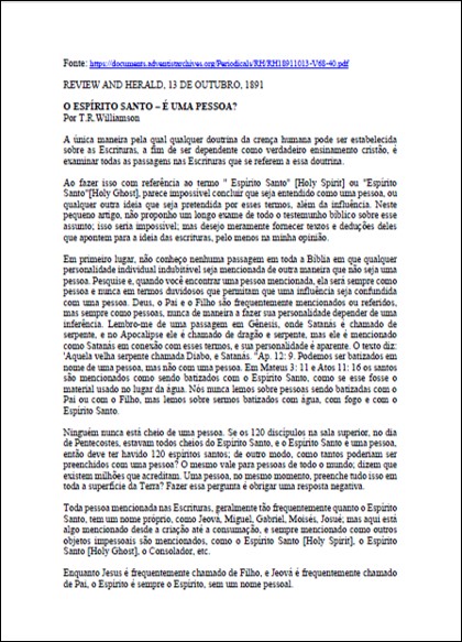 RH, 13/10/1891 – T. R. Williamson “O Espírito Santo – é uma pessoa?”
