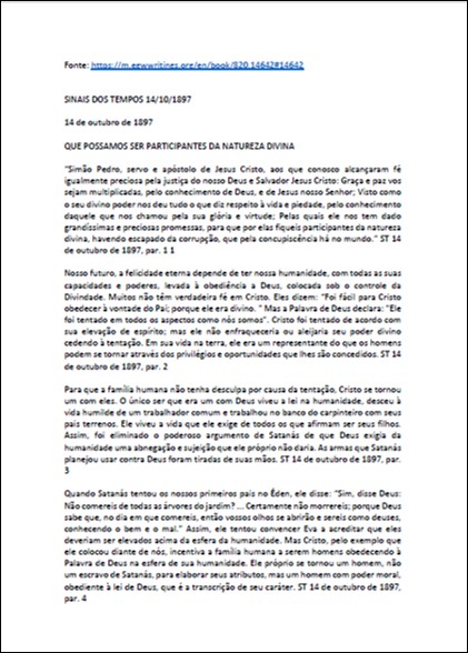 ST, 14/10/1897 – Ellen White “Que Possamos Ser Participantes da Natureza Divina”