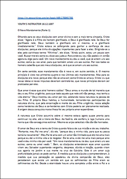 YI, 16/12/1897 – Ellen White “O Novo Mandamento (parte 1)”