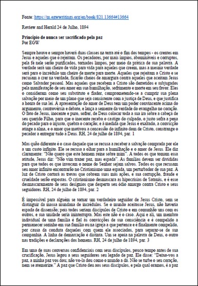 RH, 24/07/1894 – Ellen G. White “Princípio de Nunca Ser Sacrificado Pela Paz”