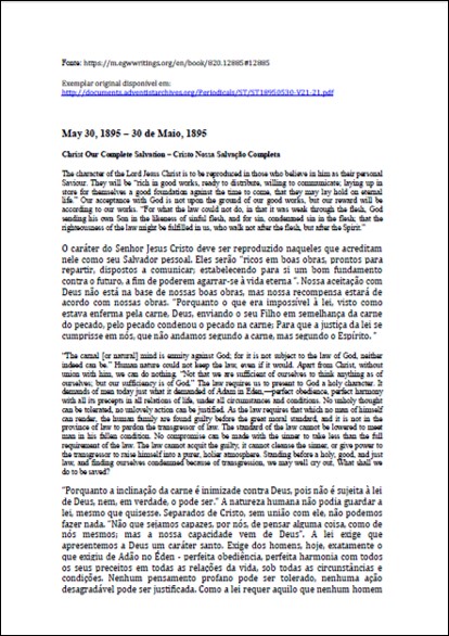 ST, 30/05/1895 – Ellen White “Cristo, Nossa Salvação Completa”