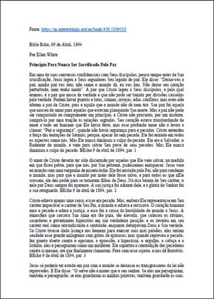 ST, BIBLE ECHO, 09/04/1894 – Ellen White “Princípio Para Nunca Ser Sacrificado Pela Paz