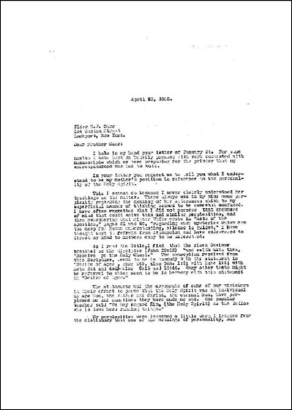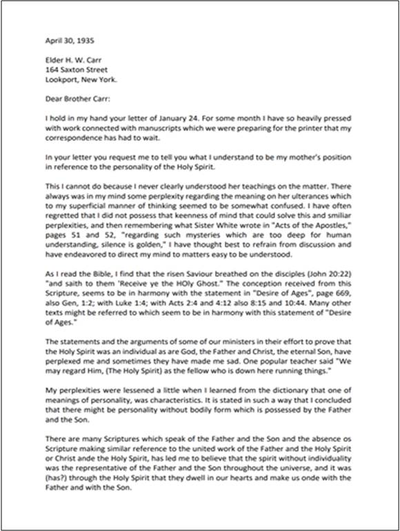 Assunto: sobre a posição de Sua mãe (Ellen White) em relação à personalidade do Espírito Santo)Download