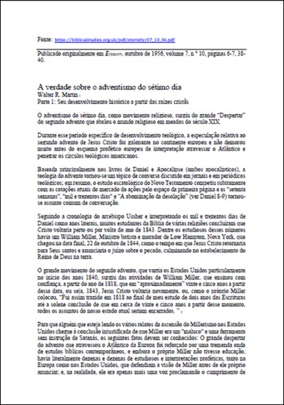 Revista Eternity Magazine, Outubro de 1956 – “A Verdade Sobre o Adventismo Do Sétimo Dia” – Por Walter R. Martin – “Parte 1: Seu desenvolvimento histórico a partir das raízes cristãs”