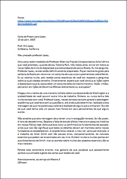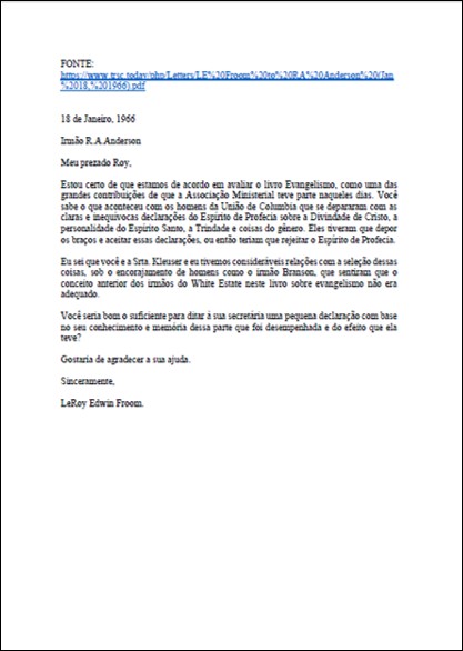 Assunto: Carta contendo declaração de Froom sobre mudança nos fundamentos dos pioneiros.Download