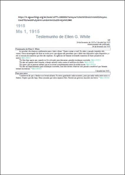MANUSCRITO 1, 24/02/1915 e 03/04/1915 – “Testemunho de Ellen G. White” sobre mudanças que ocorreriam após sua morte.Download