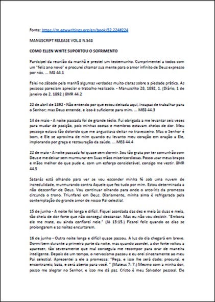 MR, vol. 8, N.548 – Ellen White “Como Ellen White Suportou o Sofrimento”