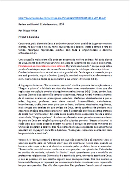 RH, 11/12/1855 – Thiago (James) White “Ensine a Palavra”