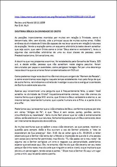 RH, 10/11/1859 – D. W. Hull “Doutrina Bíblica da Divindade de Cristo”