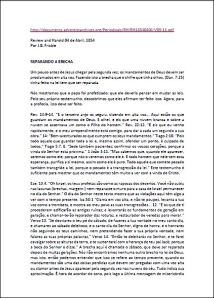 RH, 04/04/1854 – J. B. Frisbie “Reparando a Brecha”