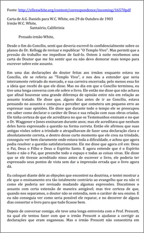Assunto: sobre considerações de Kellogg a respeito da doutrina trinitária contida no livro “Templo Vivo”Download