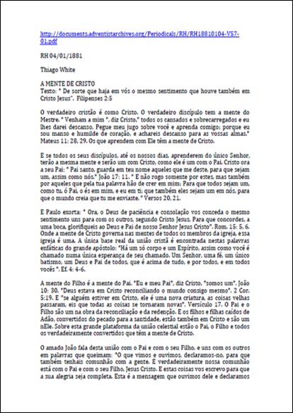 RH, 04/01/1881 – Thiago White “A Mente de Cristo”