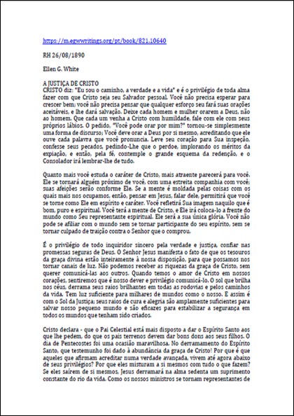 RH, 26/08/1890 – Ellen White “A Justiça de Cristo”