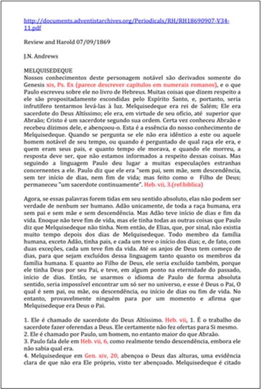 RW, 07/09/1869 – J. N. Andrews “Melquisedeque”